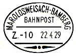 Der Gegenstempel "BAMBERG NÜRNBERG BAHNPOST" fehlt mit Bild und Daten.