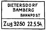 Der Gegenstempel "DIETERSDORF BAMBERG BAHNPOST" fehlt mit Bild und Daten.